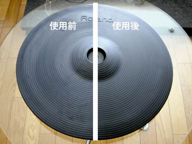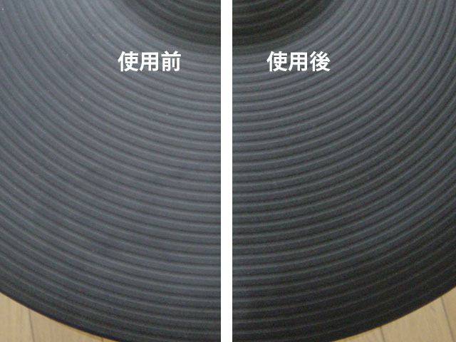 ▼ひとつだけ欠点をあげるとすると、滑りやすくなるということ。ポリマーですからどうしてもツルツルしますね。叩いた感じが明らかに変わります。使用前は、少し引っかかるようなゴムらしい感触がありましたが、引っかかりにくくなります。しばらく使って慣れてしまったので、最初は若干違和感がありましたが、すぐに慣れます。この辺は、好みが別れるところだと思いますが、、、、。