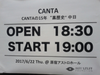 もういっちょ、翌日はこちらへ。 結成15周年を記念しした『3週連続アルバム別LIVE』 第1弾:6月14日(水)『CANTAの15年 "黒歴史" 初日』1st ~ 3rd Album 第2弾:6月22...